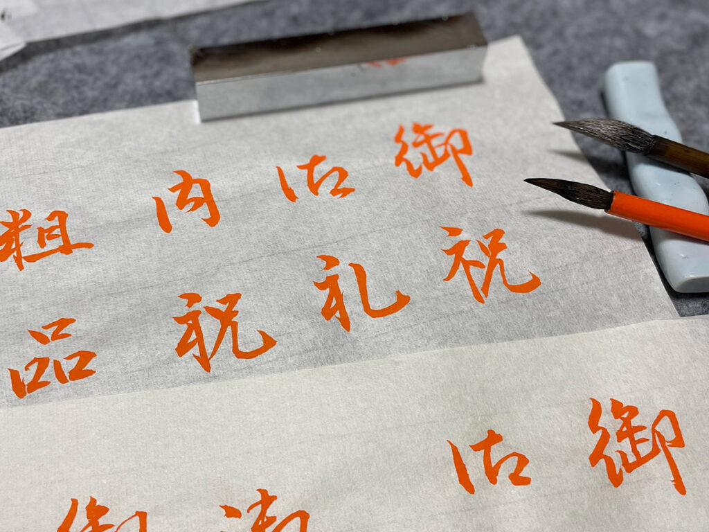 60分基礎体験:筆・墨・和紙を使って、基本線・楷書体で一文字を仕上げます。