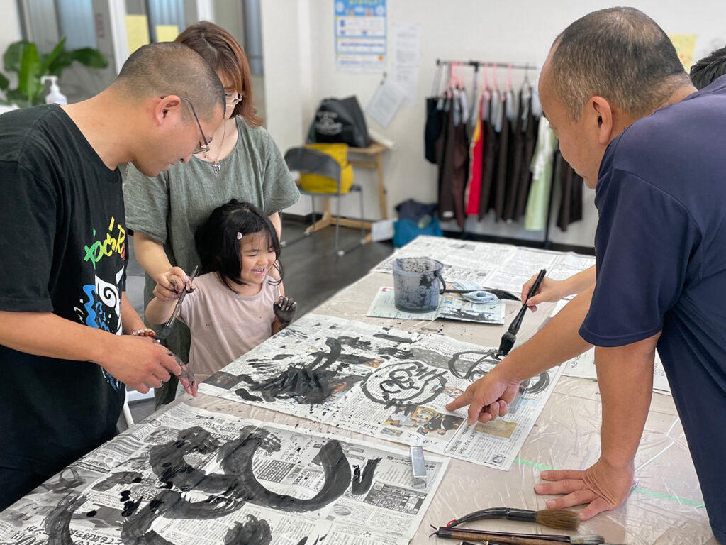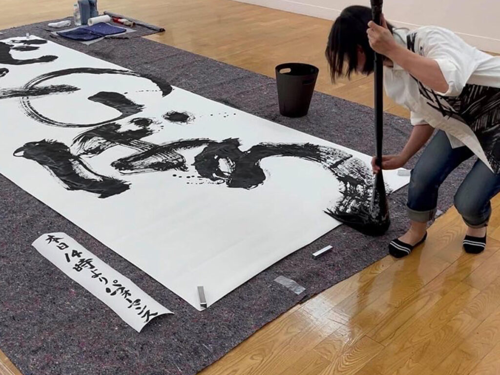 90分アート書体験:墨象の技術を用いて、動きのある文字表現や創作書作品にチャレンジ。